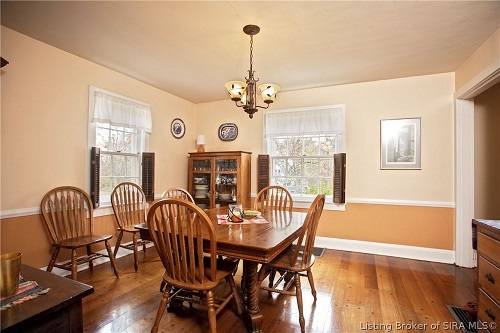 On the opposite side of the center hall is the dining room, which features the same wide plank flooring, as well as interior shutters on the windows. The kitchen is located at the rear of the house and offers lots of natural lights and period charm.