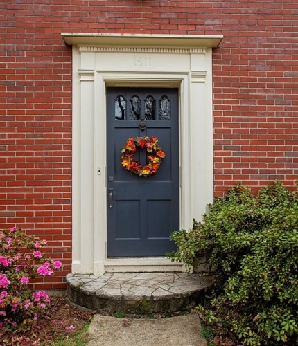 The Benjamin House offers 1745 square feet of living space, including four bedrooms and 1½ bathrooms. The brick exterior of the house is a restrained example of the Colonial Revival style, with a largely-symmetrical, three-bay façade. The focal point of the front elevation is the front door surround, with a decorative crown supported by pilasters and a row of dentils below the crown. The front door opens into a central hallway with wide, quarter-sawn oak floors and a telephone nook. The house retains its original eight-over-eight and six-over-six double hung windows throughout, as well as original woodwork and trim.
