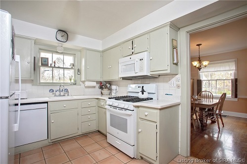 Large windows – with storm windows added for extra energy efficiency – let in abundant natural light. The octagonal floor tiles, pedestal sink and partial-tile walls of the full bathroom complement the style of the house, and it also includes a linen closet. The unfinished attic and full basement provide lots of storage space.